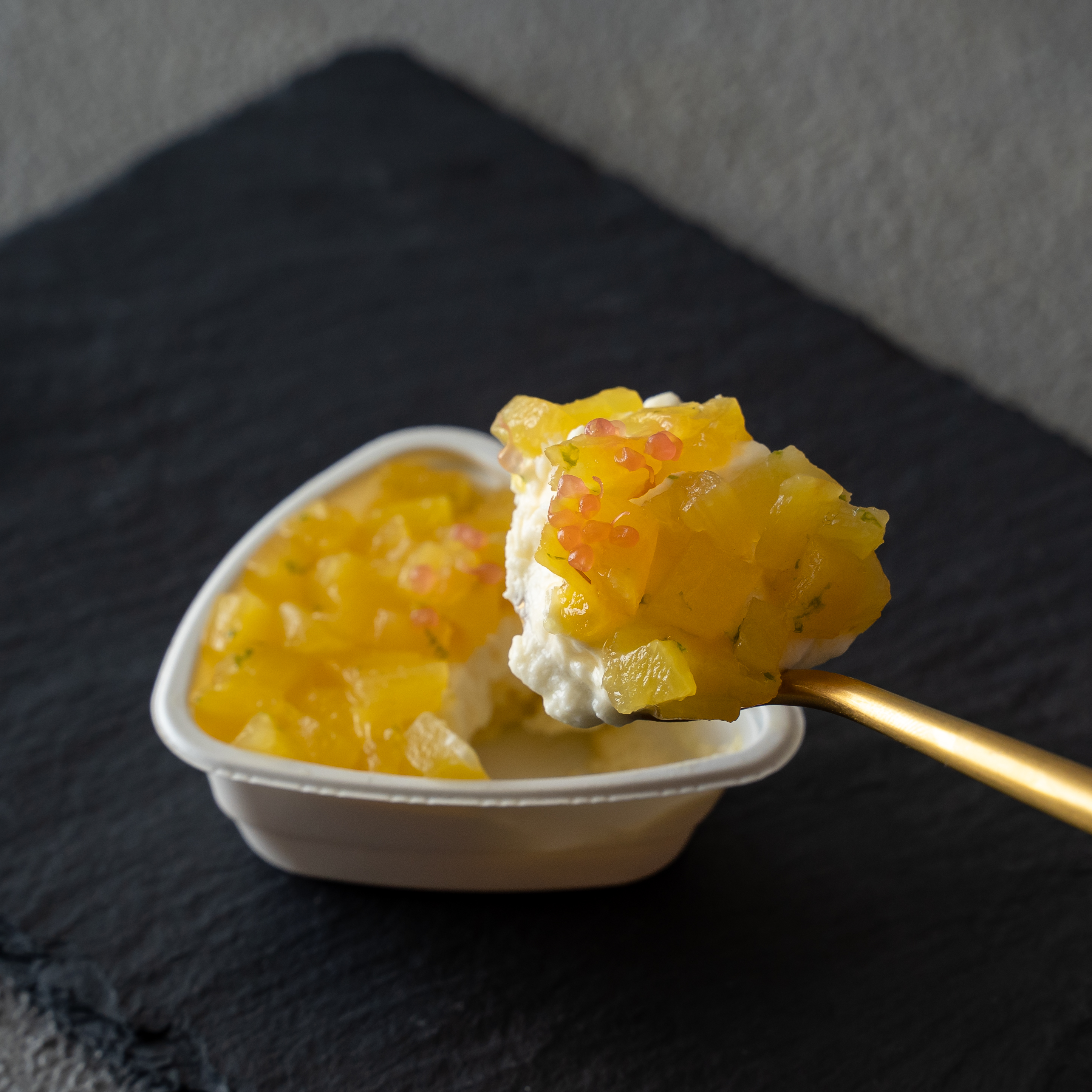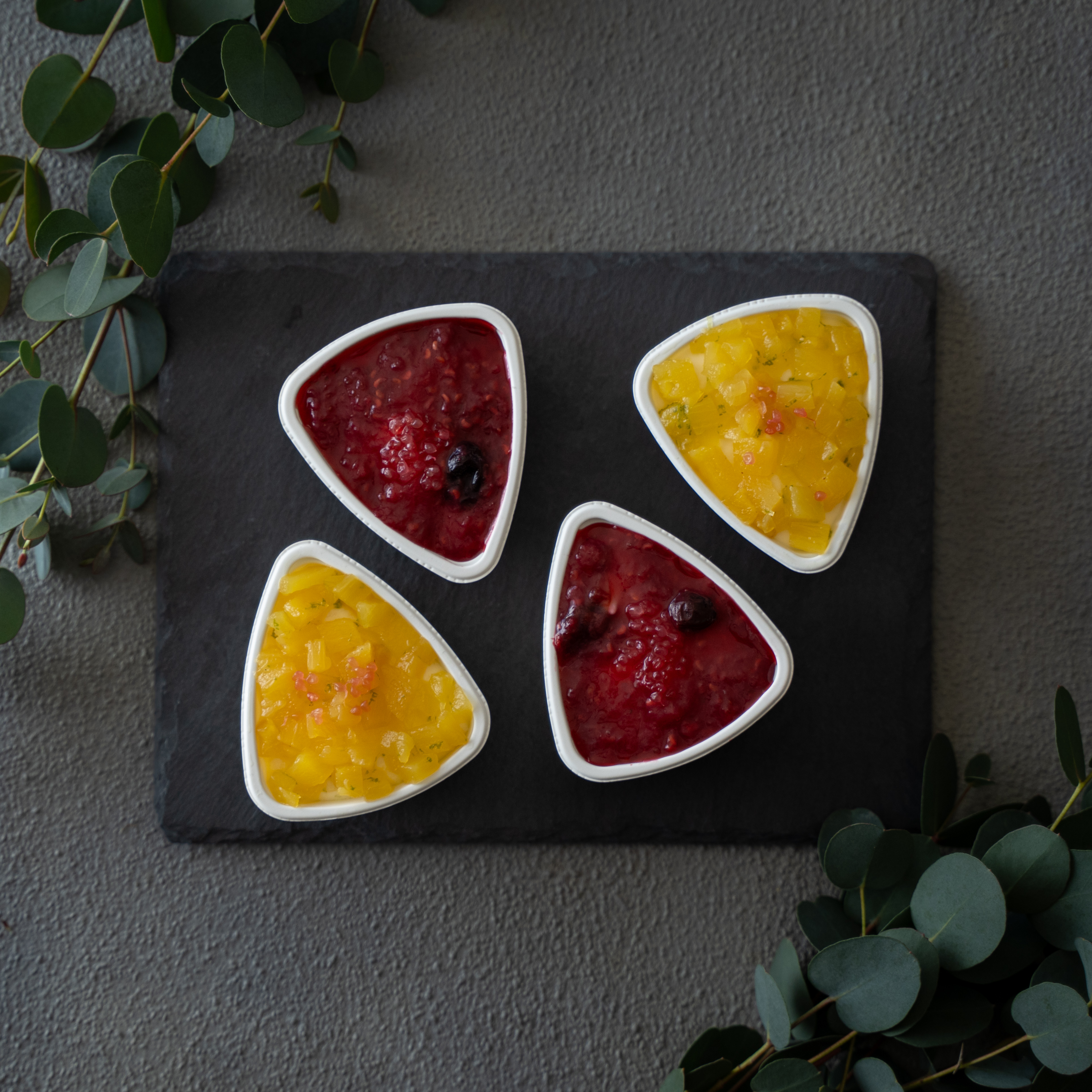 2種類のソースにキラキラした宝石、フィンガーライムをトッピング!